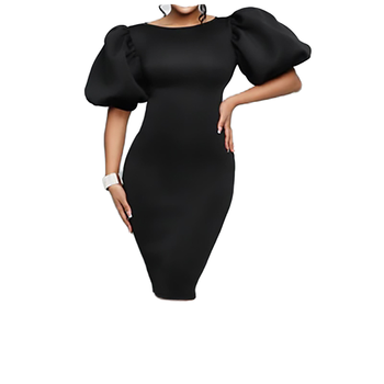 มิดิผู้หญิงทรงเข้ารูปฤดูร้อนปาร์ตี้ตอนเย็นคอกลมแขนพองลำลองหรูหราดีไซน์แอฟริกันยาวถึงเข่าไซส์ใหญ่พิเศษสำหรับฤดูใบไม้ผลิ